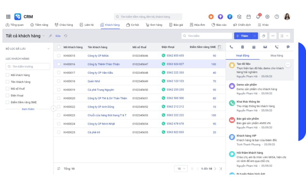 • Tập trung dữ liệu: Xóa bỏ tình trạng thông tin khách hàng nằm rải rác ở Zalo, Email, Excel. Toàn bộ dữ liệu được lưu trữ tập trung, an toàn và dễ dàng tra cứu.